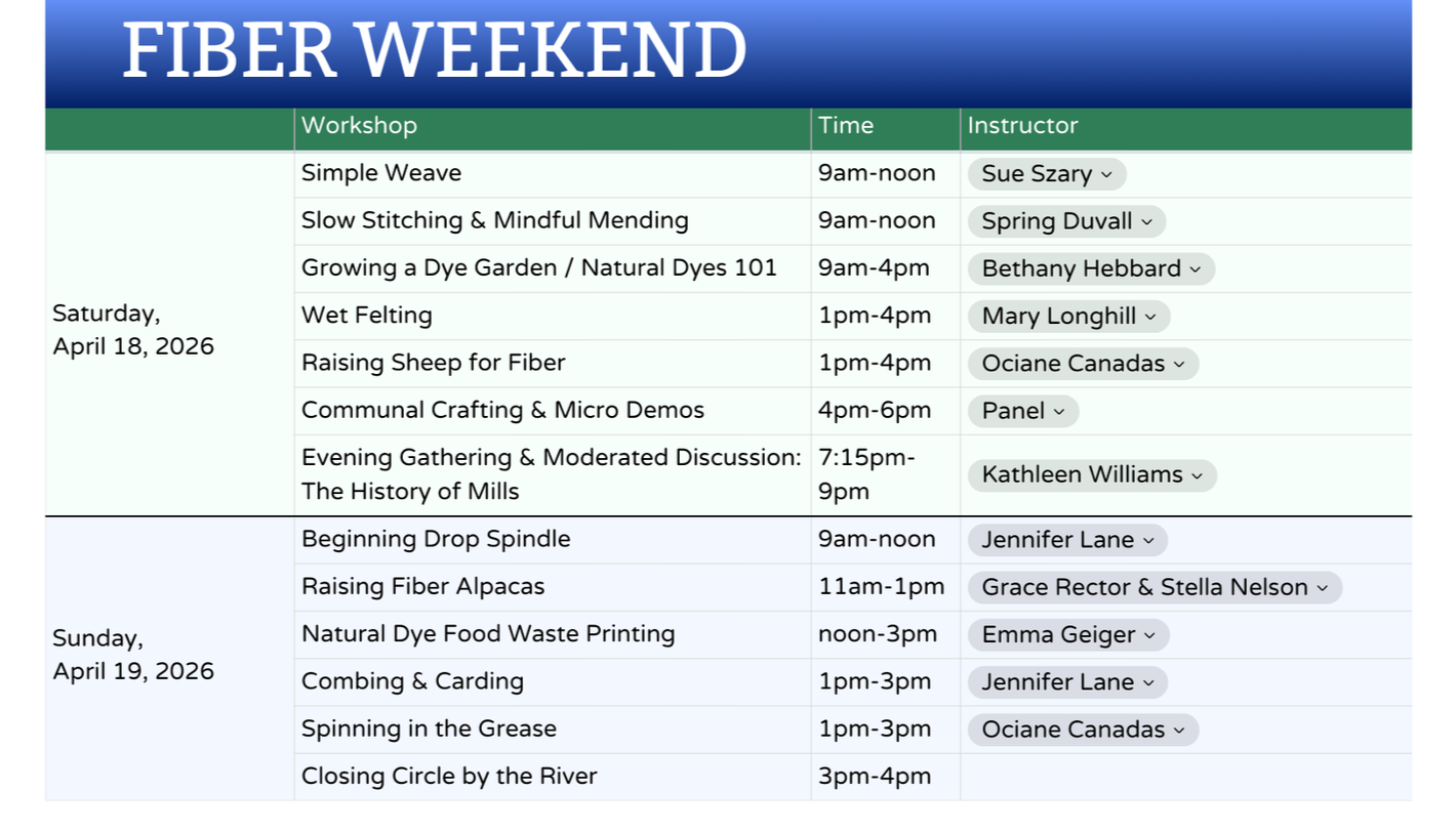 This day pass is valid for all sessions on either Saturday or Sunday (April 18 or 19) of Fiber Weekend. See below for full schedule.